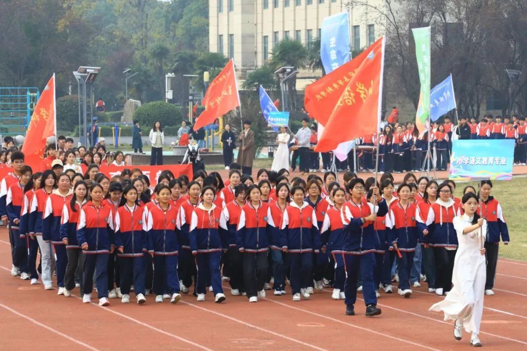 开幕式上,伴随激昂雄壮的《运动员进行曲》,国旗队、红旗队、各学院运动员代表队及教职工运动员代表队依次迈着整齐划一、铿锵有力的步伐从主席台前走过,展现了幼专师生昂扬的精神风貌。