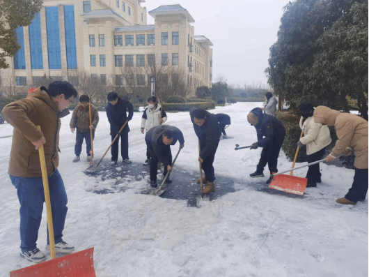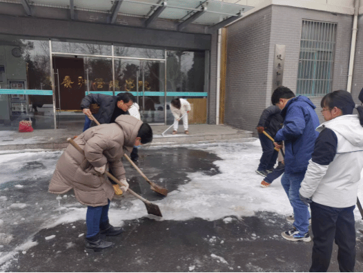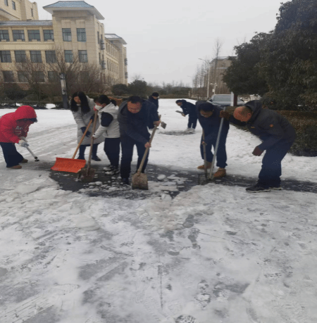 近期受北方较强冷空气影响,我市出现了降雪冻雨等极端天气,我校校园路面大量积雪结冰,严重影响了师生以及车辆的通行安全。为认真落实《中共阜阳市委组织部关于在防范应对低温雨雪冰冻灾害中充分发挥各级党组织和广大党员干部作用的通知》精神,巩固拓展学习贯彻习近平新时代中国特色社会主义思想主题教育成果,消除学生近期返校的不利因素,为开学做好安全准备工作,2月22日下午,健康和管理学院党总支在学院负责人、党总支副书记严岳峰的带领下开展了“党员干部当先锋,清雪除冰保畅通”志愿服务暨主题党日活动。