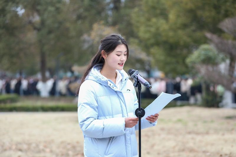 学生代表姜语童作“幼专青年说”——《青春与志愿同行》主题演讲。她表示,入校以来,她积极参加学校组织的各类志愿活动,从迎接新生、文明劝导,到阜阳市运动会、“阜阳学子家乡行”等大型赛会的志愿服务,一路走来,在锻炼中积累了宝贵的人生财富。她呼吁,让青春与志愿同行,以实际行动传承和弘扬雷锋精神,践行奉献、友爱、互助、进步的志愿服务精神,为推动阜阳幼专健康发展凝聚强大力量。