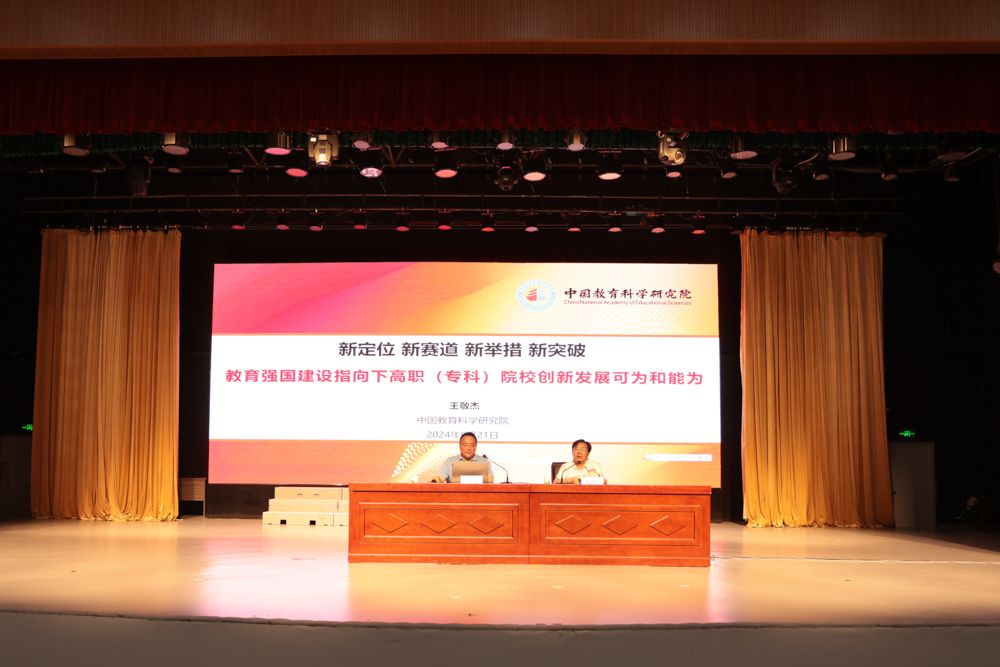 为深入学习贯彻习近平总书记关于推进教育强国建设的重要讲话精神,科学把握高等职业教育发展新趋势,6月21日下午,我校举办高职(专科)院校创新发展专题报告会,邀请中国教育科学研究院职业教育与继续教育研究所副研究员王敬杰博士作专题报告。校党委书记董志诚主持会议并讲话。校领导汤志、于华献、许宗志、徐常恺,各学院、各部门主要负责同志,全体教职员工以及学生代表等500多人参加了报告会。