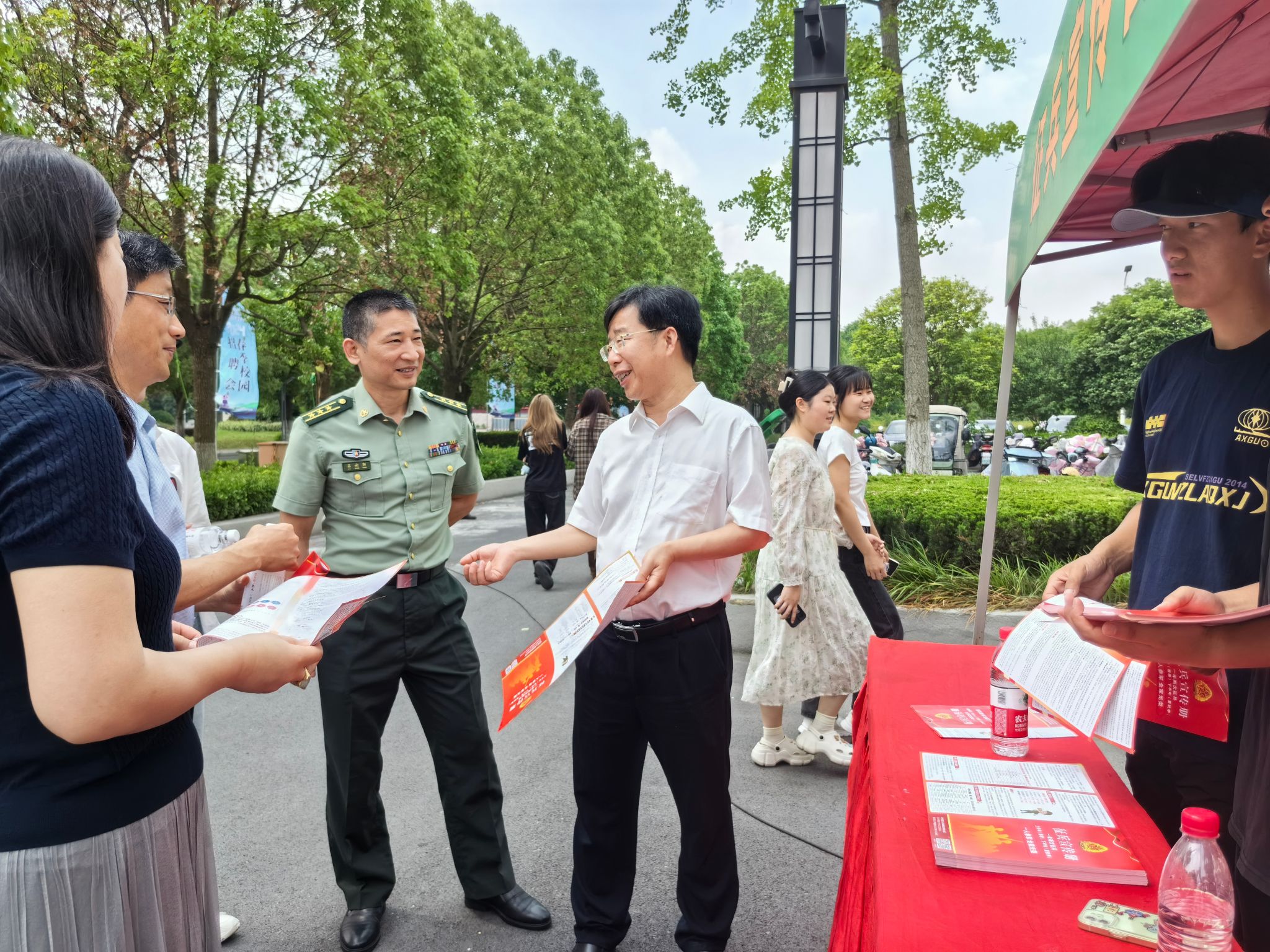 为推进学校征兵工作,激励更多优秀大学生参军报国,5月22日,利用校园招聘会时机,邀请颍州区人武部相关领导到校开展线下征兵动员宣传活动,党委书记董志诚,党委副书记、校长汤志现场指导。