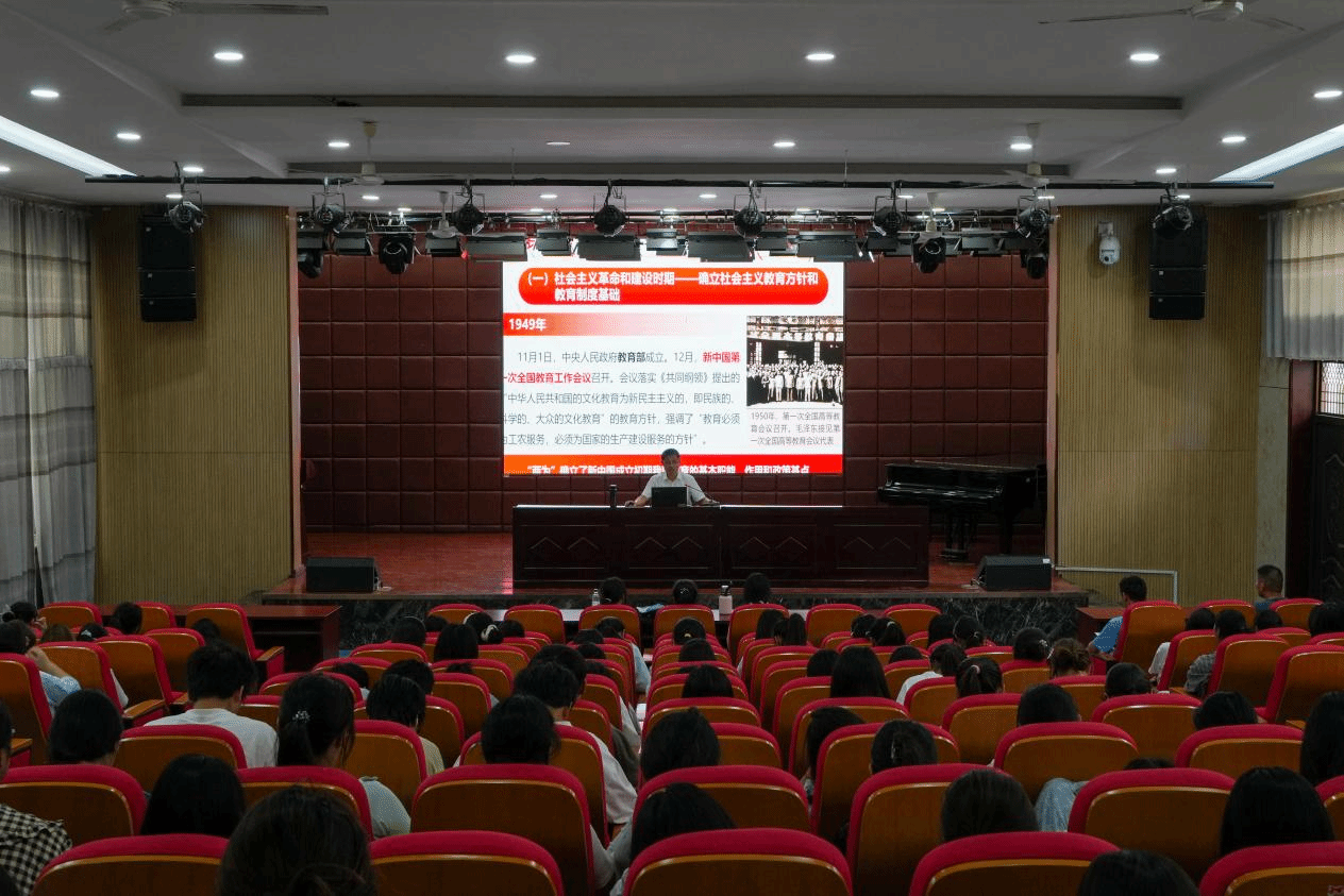 课上,汤志从新中国教育发展主要历程、以教育强国建设支撑引领中国式现代化、向建成教育强国目标扎实迈进三个方面,借用一个个鲜活的事例、一个个精确的数据、一项项发展成果向同学们讲述了中国教育发展的光辉历程,振奋人心,鼓舞斗志。