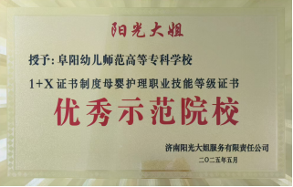 为深入落实《国家职业教育改革实施方案》,积极推进教育部1+X母婴护理职业技能等级证书制度的相关工作,经教育部认定的评价组织济南阳光大姐服务有限责任公司评审,我校在百余所院校当中以优异成绩被评为“2025年度1+X母婴护理职业技能等级证书优秀示范院校”,多名教师荣获“优秀考评员”“优秀教师”“优秀考务工作者”称号。