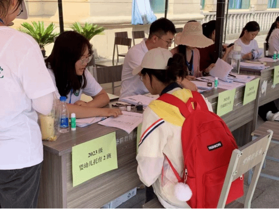 为确保新生顺利入学,学前教育学院以专业班级为单位,设置了十个迎新报到,组建了一由院学生会、院志愿者协会、2022级同学代表组成的迎新服务队,并设置了党员先锋岗、绿色通道、综合服务台各类服务点,做到“让新生温暖,让家长放心”,为新生提供便利的“一站式”暖心报到服务。
