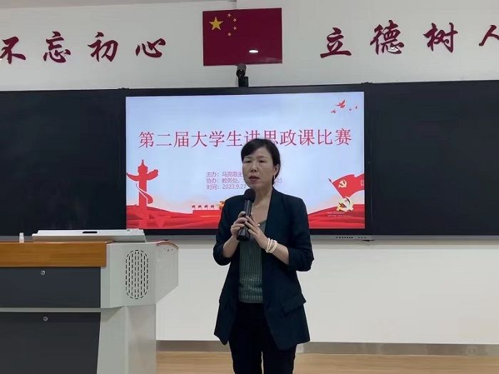 参赛选手围绕“新思想引领新征程,新青年建功新时代”的比赛主题,选取《习近平新时代中国特色社会主义思想概论》等四门思政课程中的有关章节或专题进行授课,展示自己以奋斗之青春担当民族复兴重任,书写“新青年建功新时代”的决心。同学们讲课形式灵活多样、逻辑框架清晰、教态自然亲和,展现出新时代大学生朝气蓬勃的精神风貌和良好的马克思主义理论素养。评委代表刘晓娟教授从教学设计、案例选择、授课方式等方面提出了改进建议,勉励学生热爱思政课、学好思政课。