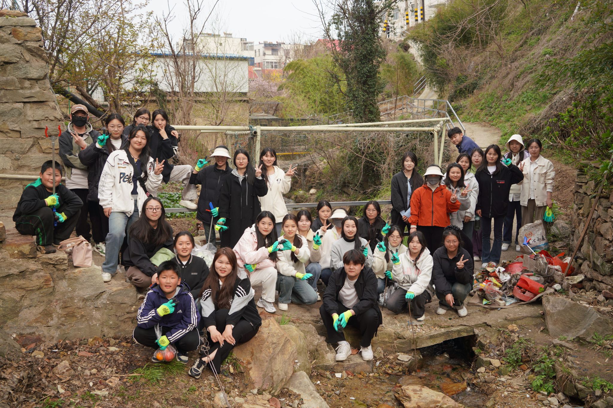 清理河道时同学们三五成群,相互为伴,由于河道湿滑,同学们互相搀扶,虽然艰难,但热情高涨,不怕脏乱,共同把垃圾成堆的小溪清理干净,赢得了当地社区工作人员一致好评。