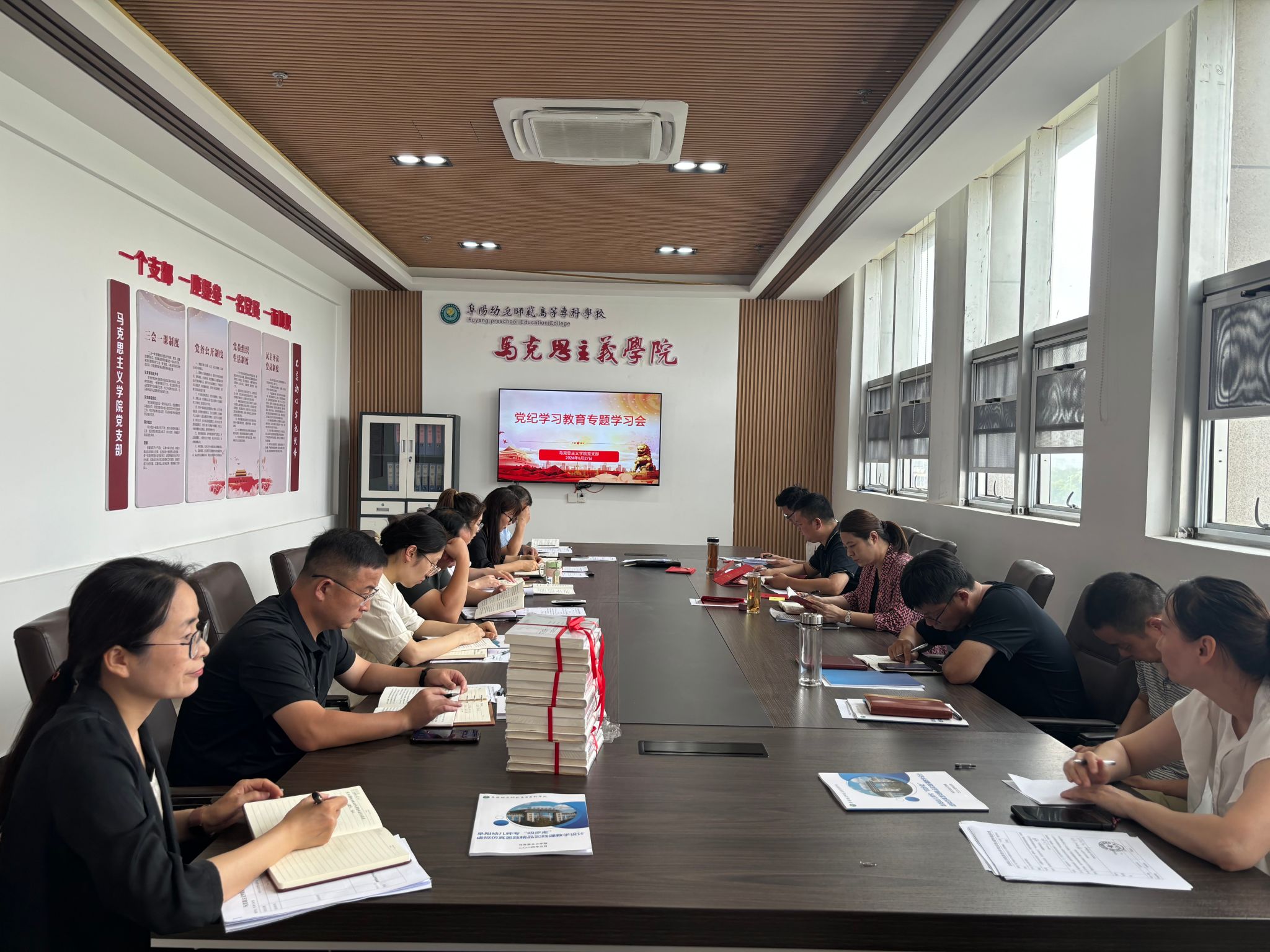 6月27日上午,马克思主义学院直属党支部召开党纪学习教育专题学习会,深入学习领会习近平总书记关于全面加强党的纪律建设的重要论述,马克思主义学院直属党支部党组书记、院长何丽娜主持会议并讲授专题党课。马克思主义学院全体党员、教职工出席会议。
