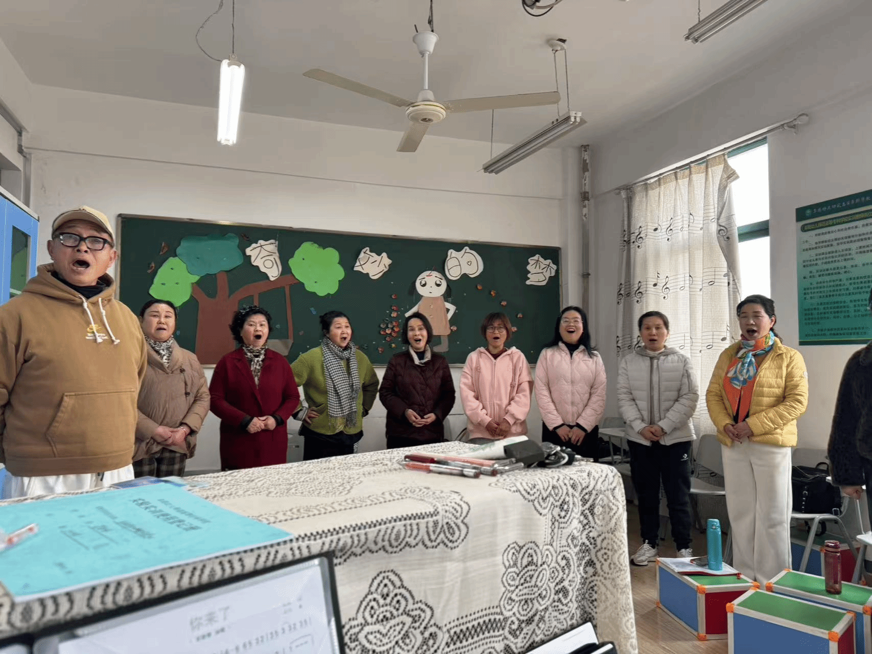 老年大学合唱班学员们精神饱满,热情高涨。他们跟着老师的节奏,认真地练习发声、调整音准,还不时互相交流心得,共同进步。在合唱练习环节,学员们更是全神贯注,用饱满的情感投入到每一首歌曲的演唱中。他们的歌声悠扬动听,充满了对生活的热爱和对未来的憧憬。