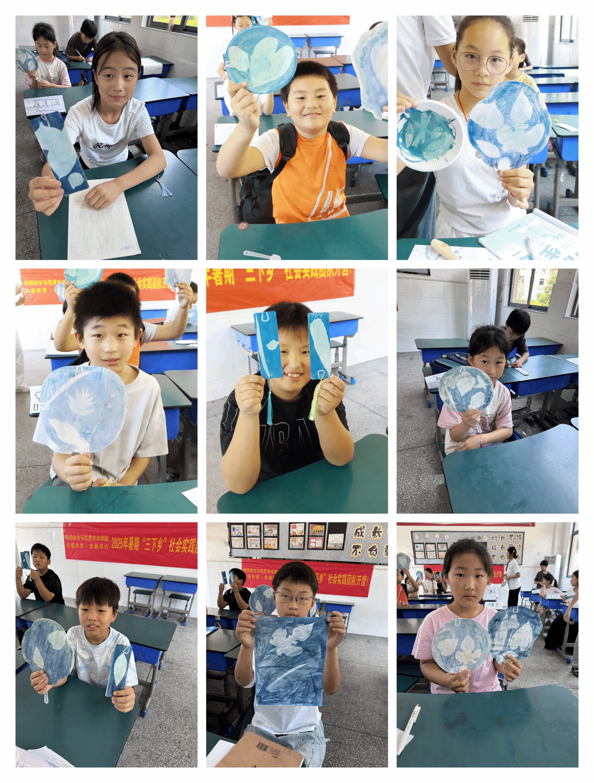 副队长谢佳慧带领学生体验“蓝晒工艺”,通过原理讲解与实操制作,让孩子们感受传统工艺的蓝色魅力。