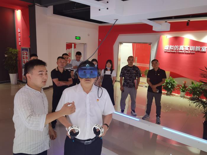 李付明一行高度评价我校虚拟仿真思政课体验教学形式,纷纷表示深受教育,不虚此行。李付明希望继续深化与我校的交流合作,借助我校在现代虚拟仿真技术上的资源优势、技术优势和师资优势,积极开展各类党建学习交流活动,助推党员教育走深走实。(图文:王慧中    审核:何丽娜)