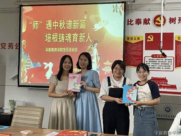 金风送爽,叠翠流金。9月9日下午,在教师节和中秋节同至之即,学前教育学院教师党支部在行知楼413开展了“师遇中秋谱新篇、培根铸魂育新人”——庆祝第38个教师节暨主题党日活动。