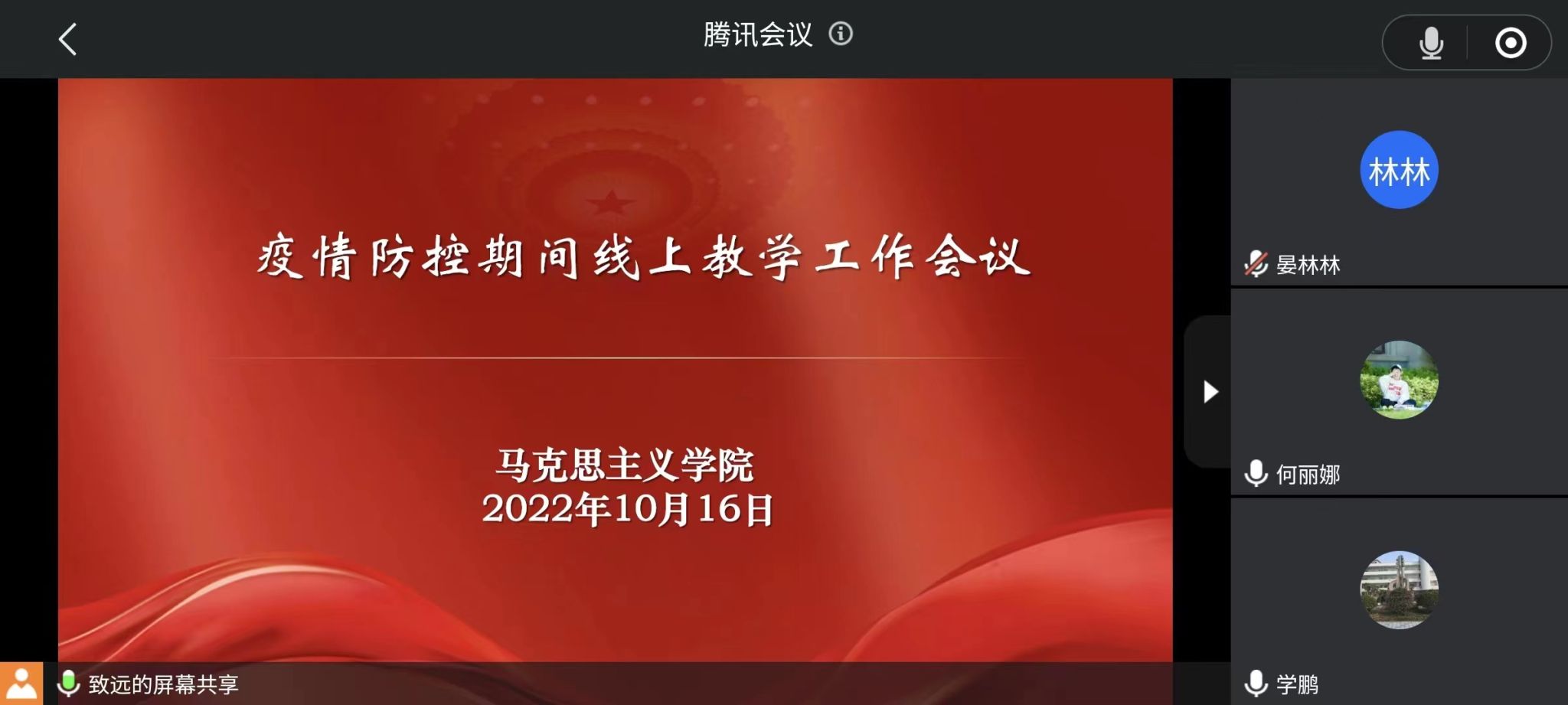10月16日上午,马克思主义学院召开线上全体教职工大会,会议由马克思主义学院党支部书记、院长何丽娜主持,全体教师参加会议。